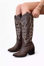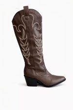 Com cano longo estruturado e detalhes de bordados contrastantes, ela traz a essência da tendência texana com um toque sofisticado e atual. O design valoriza a silhueta e adiciona presença instantânea ao look.