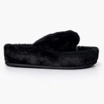 O modelo possui tiras largas que abraçam o pé com segurança, enquanto o revestimento em pelo garante um toque de sofisticação e tendência — perfeito para produções comfy chic que estão super em alta.