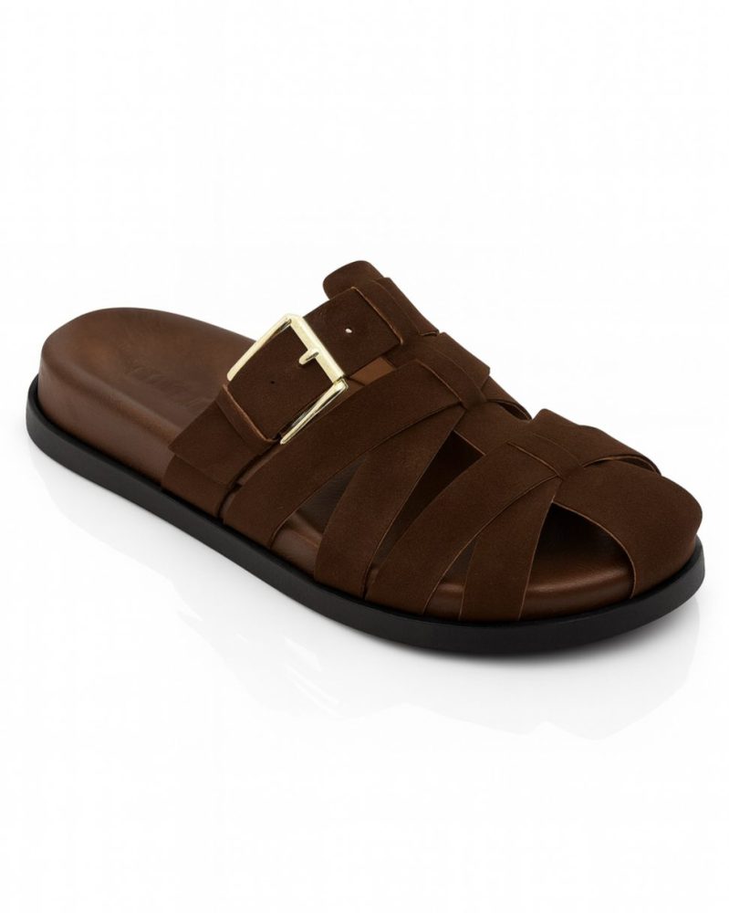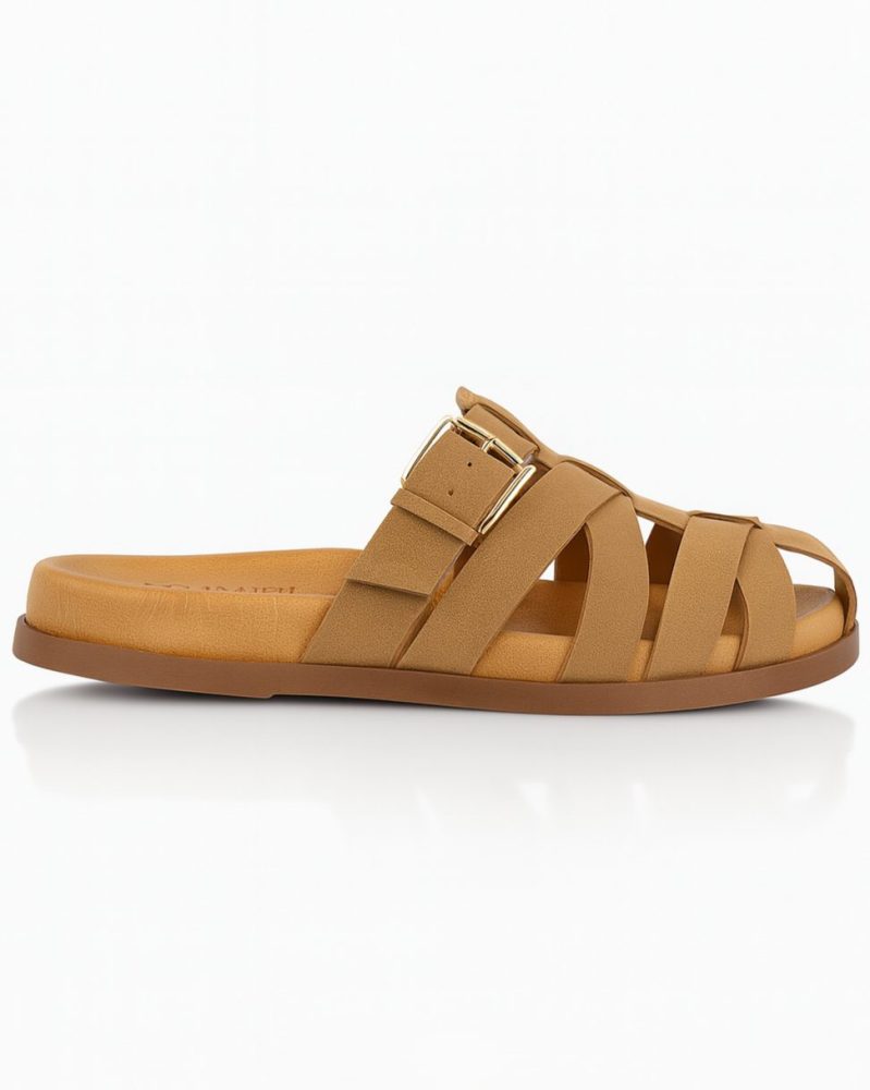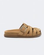 Flat Clog Feminina Estilo Birken em Camurça Sintética Caramelo com Fivela – Exclusivo FEMMINE
