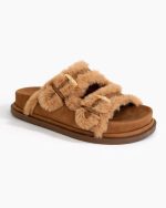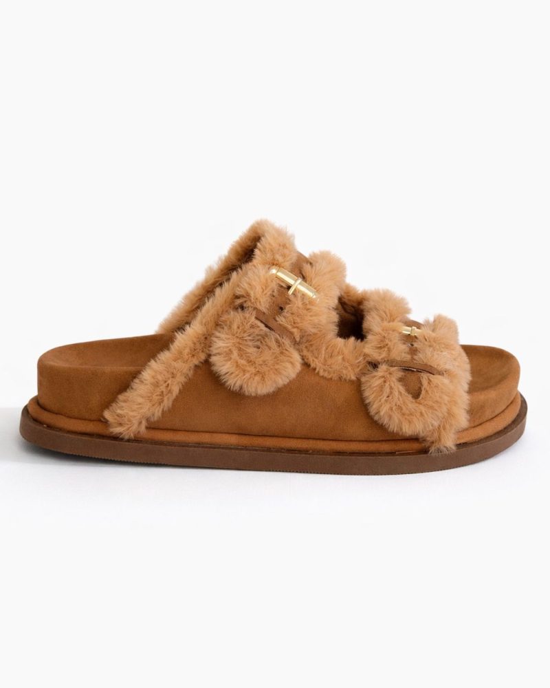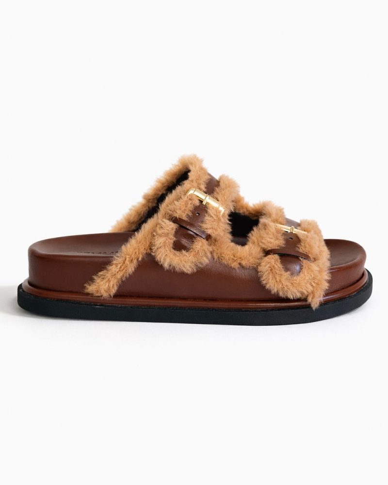 Confeccionada em material sintético de alta qualidade, a Coffee possui solado flatform de 4 cm, que garante estabilidade, segurança ao caminhar e uma leve elevação que valoriza a silhueta sem cansar. As fivelas ajustáveis permitem um encaixe perfeito ao pé, oferecendo mais firmeza, praticidade e adaptação a diferentes formatos de pisada. Toda a parte interna é forrada em pelos, trazendo sensação de aconchego, conforto térmico e bem-estar ao longo do dia.