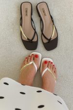 Seu formato minimalista alonga o pé e adiciona um charme discreto e chic em qualquer ocasião. Disponível nas cores marrom e off white.