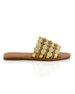 Rute – Rasteira Couro Feminina Prata Medalhas