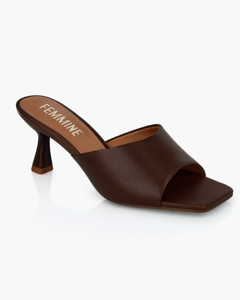 Aposte no charme minimalista e sofisticado da Sandália Mule Feminina FEMMINE. Produzida em 100% couro legítimo, ela garante durabilidade e conforto em cada detalhe. O modelo possui salto taça médio, moderno e elegante, além de cabedal clean que valoriza qualquer produção. Disponível nas cores off, caramelo e marrom, é a escolha perfeita para compor looks do dia a dia até ocasiões especiais.