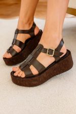 Com design estruturado e salto plataforma em cortiça texturizada, o modelo traz um visual marcante e sofisticado, ideal para quem ama looks com presença.