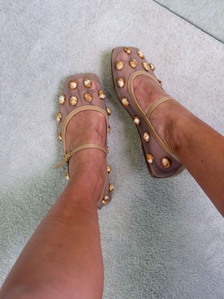 Na cor caramelo, a Sapatilha Emily traz uma tonalidade quente que combina com vestidos fluidos, saias midi ou calças de alfaiataria. Essa versatilidade permite transitar entre looks chiques e casuais com um toque de glamour sutil.