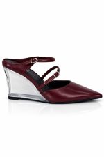O scarpin wedge cristal FEMMINE é a escolha ideal para quem busca impacto visual com elegância. Confeccionado em material premium, ele combina bico fino alongado — que valoriza a silhueta — com o salto wedge em cristal transparente, uma das grandes tendências confirmadas para 2026.