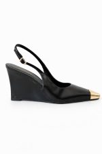 O grande destaque fica por conta do detalhe metalizado na ponta, que adiciona personalidade e luxo na medida certa, transformando o modelo em uma peça marcante e refinada. O salto wedge garante estabilidade e conforto para acompanhar sua rotina com segurança e estilo.