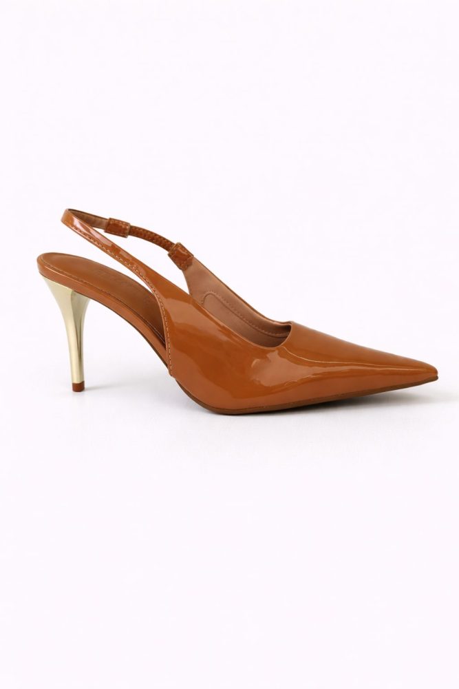 Slingback Ponta Fina Alongada Salto Médio Verniz Nude Kim
